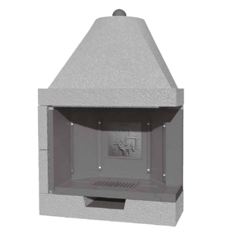 Focolare decorativo o da cottura ad uso ricreativo completo di: valvola fumi, vaschetta raccogli cenere e griglia in ghisa.